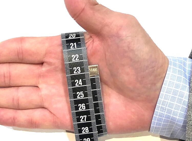 サイズは手囲い(親指の付け根の部分の手の平周りの寸法)24㎝程度までフィットします。